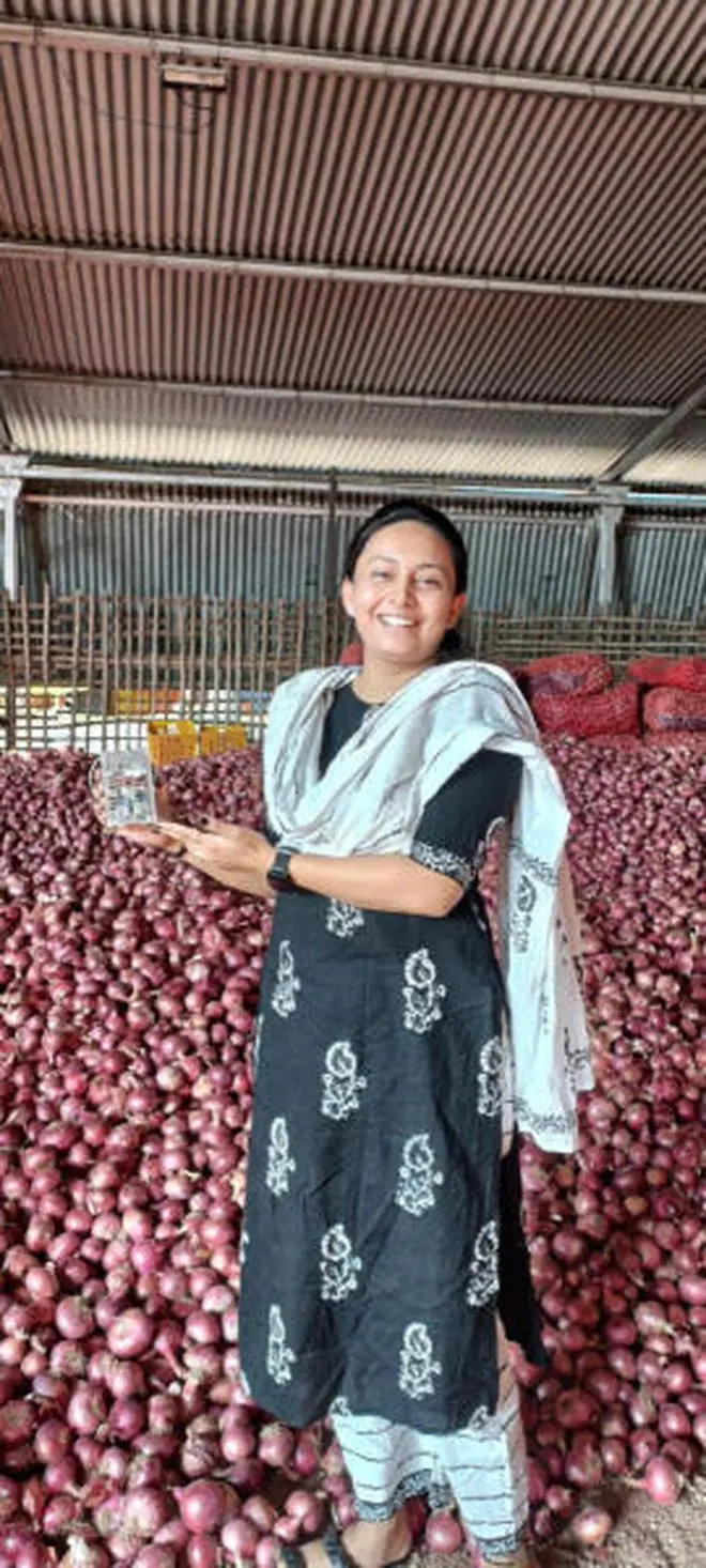 By the time she was finishing her computer engineering degree at Amrutvahini College of Engineering in Sangamner (in Maharashtra) in 2018, she once again heard the familiar lament: Stored onions were sprouting, decaying, and unsellable. Her own family expected her to complete her degree and move to a city for a job. But the constant echo of the farmers’ woes made her pause. “I remember 2016-17 was a bad year for farmers,” she recalls. “I thought, why shouldn’t I try to solve this problem? After all, I was one of them.”