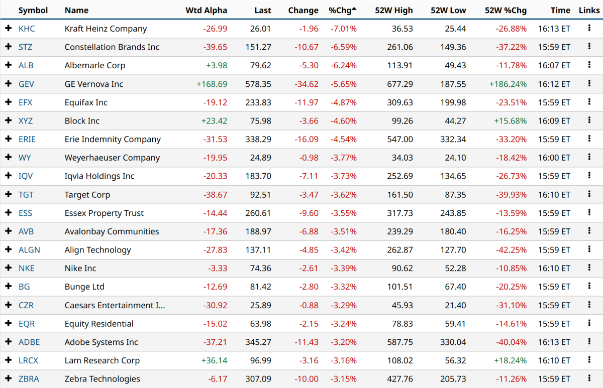 S&P 500 Decliners: Bottom 20